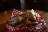 On toasted marble rye. Montreal smoked meat, 1000 island dressing, swiss cheese and sauerkraut on marble rye.